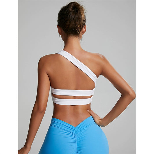 Women's One-shoulder Shockproof Bra Sports Quick-drying Nude Feel Shoulder Belt Beauty Back Yoga Clothes