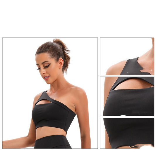 Irregular Strap Oblique One Shoulder Shockproof Yoga Bra