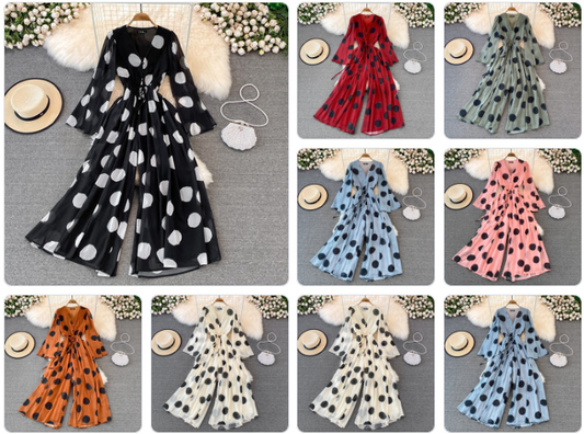 Polka Dot Printed V-neck Jumpsuit