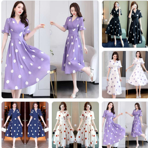 Polka Style Mid Length Waistband Slimming Dress
