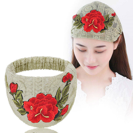 Embroidered Flowers Cover White Hair Wide-brimmed Headband For Ladies